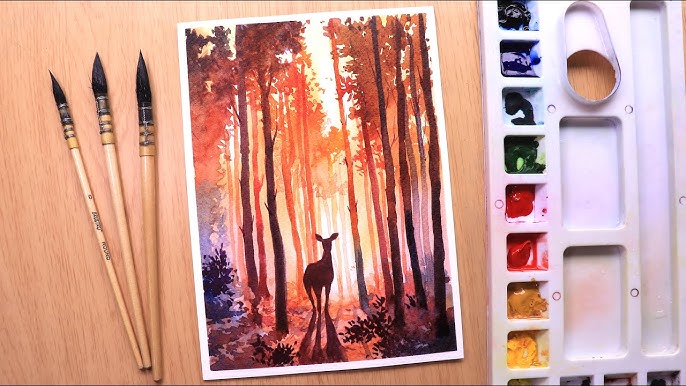 Watercolor Painting For Beginners Of Beautiful Forest Landscape Easy Youtube
